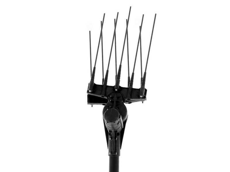 L'abbacchiatore, munito di un'asta di 2 metri, può essere esteso fino a 3 metri grazie all'asta di prolunga fornita, la quale può essere montata nella parte inferiore dell'asta principale.