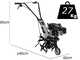 Ideale per la lavorazione del terreno di piccoli orti, giardini e serre; grazie alla sua leggerezza e alla presenza del ruotino il trasporto della macchina è semplice e veloce.