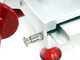 La macchina è fornita di braccio blocca merce scorrevole con minimo spessore calibrato per ridurre al massimo gli sprechi con punte in plastica per non far scivolare l'alimento da affettare.