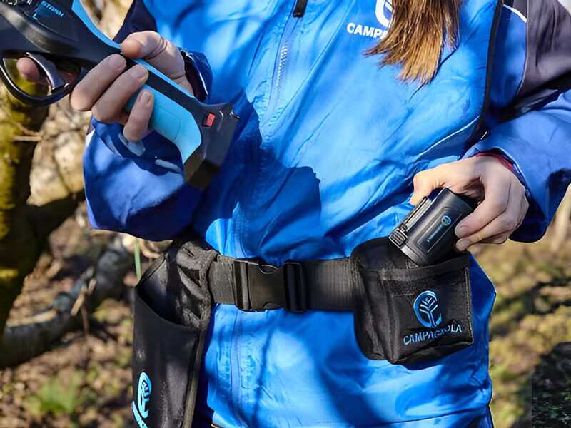 Le forbici da potatura elettronica STARK XL Campagnola sono dotate di batteria ai polimeri di litio da 2,5 Ah compatta e con scocca leggera realizzata in resistente plastica.