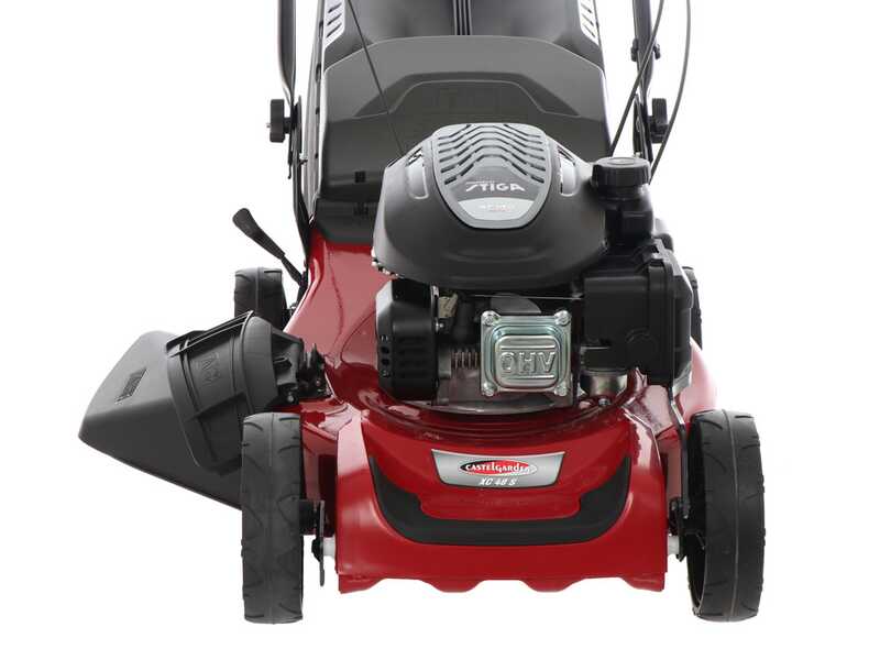 CastelGarden XC 48 S C è un tosaerba a trazione posteriore con scocca in acciaio, sacco raccoglierba in plastica da 60 litri e motore Castelgarden da 139cc.