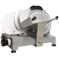 Questa affettatrice abbina robustezza e praticità, rendendola adatta a qualsiasi cucina grazie al suo design compatto. La struttura, realizzata in alluminio pressofuso, beneficia di un trattamento MAT conforme alle norme Moca, che le dona resistenza ai graffi e facilità di pulizia con detergenti non tossici, riducendo la necessità di manutenzione frequente.