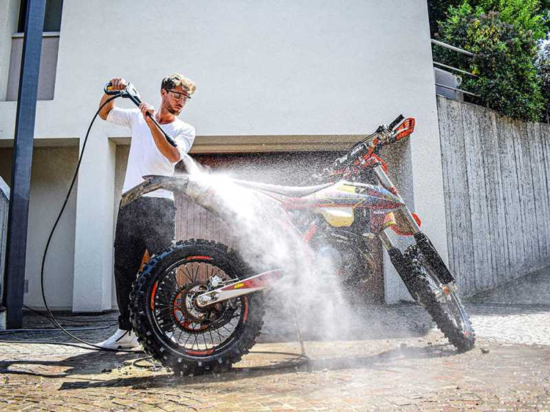 Questa idropulitrice è semplice ed efficiente. Macchina affidabile e pratica, risulta maneggevole per ogni utente. Garantisce elevate prestazioni insieme a praticità di utilizzo. Possiede una pompa assiale a tre pistoni con testata in alluminio con valvola by-pass incorporata.