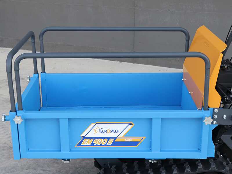 La motocarriola EuroMech EM400H-Agri riesce a trasportare un peso massimo di 400Kg in piano, mentre può trasportare fino a 100Kg con una pendenza massima del 30%.