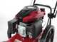 Questo decespugliatore a ruote si distingue in quanto dotato di rinvio tra motore e lama con trasmissione a cinghia.