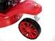 La grande particolarità di questo tagliaerba sta nelle ruote, che sono in totale 3, di cui 2 posteriori semoventi che trasmettono la trazione alla macchina, e una anteriore pivottante.