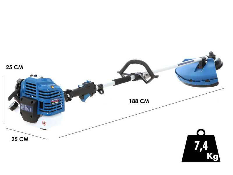 All'operatore basterà smontare l'asta del decespugliatore per cambiare lavorazione. La particolarità di questo strumento multifunzione è l'asta smontabile in 2 pezzi, che permette inoltre di essere trasportato molto facilmente.