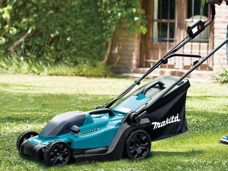 Il tosaerba Makita DLM330RM a batteria 18V si distingue per l'alta qualità costruttiva. Offre un uso intuitivo e una guida agevole. È l'opzione perfetta per curare il proprio prato liberandosi degli ingombri e del peso dei motori tradizionali a benzina.