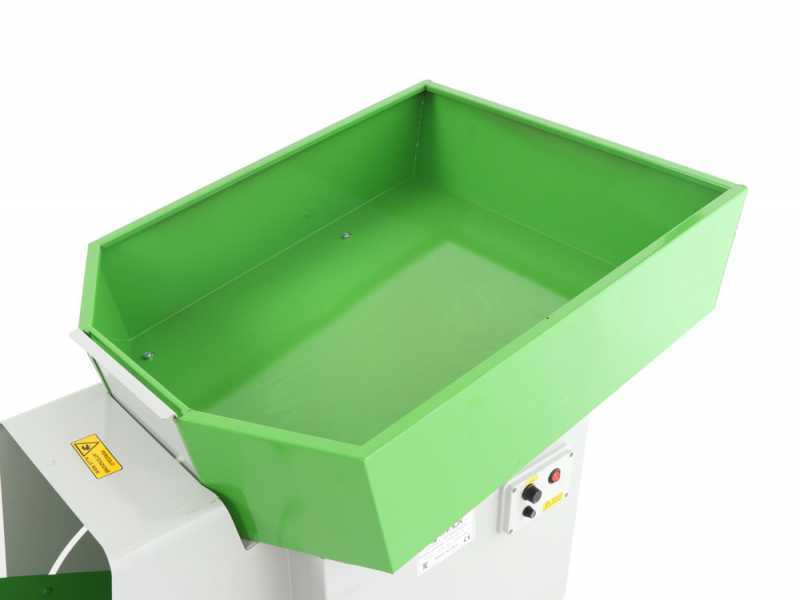 Il funzionamento della defogliatrice, semplice quanto efficace, sfrutta la ventilazione prodotta dalla ventola per separare elementi di peso diverso, come le olive dai rametti e dalle foglie.