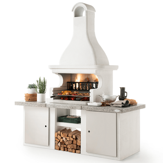 Il Barbecue Palazzetti Glasgow 3 è una struttura robusta e di grandi dimensioni, progettata per la cottura con legna e carbone. Il basamento e la cappa sono costruiti con un conglomerato cementizio refrattario, mentre il vasto piano di lavoro è realizzato in Marmotech levigato, una speciale miscela di graniglia di marmo con elevata resistenza termica e meccanica.