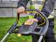 Il tagliaerba ha una larghezza di taglio di ben 48 centimetri e un'altezza di taglio regolabile da 25 a 86 millimetri.