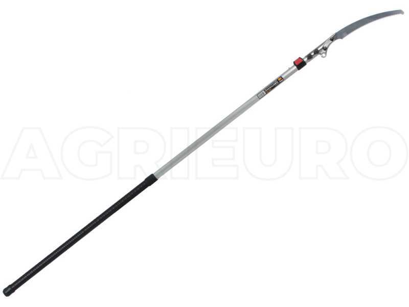 L'asta telescopica è regolabile e va da un minimo ( segaccio compreso) di 200 cm ad un massimo di 330 cm.