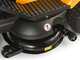 Il piatto di taglio da 102 cm, dotato di doppia lama, consente una copertura ampia. La regolazione dell’altezza di taglio avviene manualmente tramite leva su 7 posizioni, da 30 a 90 mm. Il sistema di raccolta posteriore include un capiente sacco in tessuto da 300 litri, con svuotamento manuale.