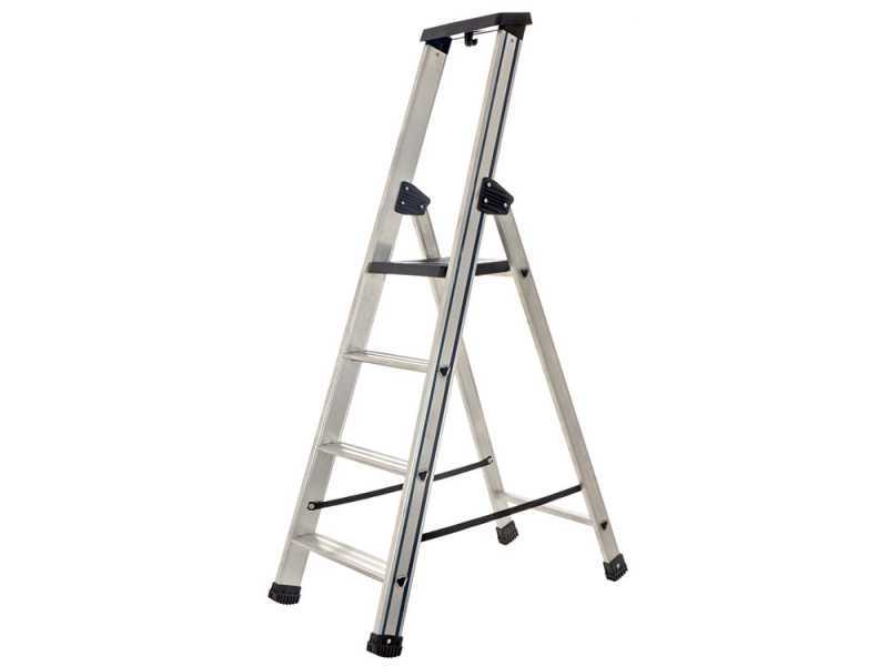 Scala apribile di tipo industriale idonea anche per uso domestico, gradini con superficie antiscivolo, piattaforma ribaltabile automaticamente, parapetto di sicurezza e gancio di sicurezza, la versatilità di questo prodotto la rende ideale per qualsiasi lavoro, in casa o all'aperto.