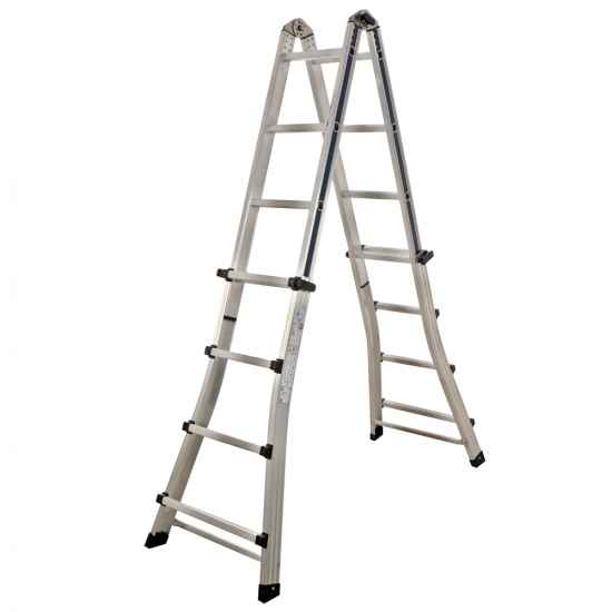 Scala in alluminio doppia telescopica S.T.P. UNIVERSALE. La versatilità di questo prodotto la rende ideale per qualsiasi tipo di lavoro, in casa (completamente chiusa occupa pochissimo spazio) o all'aperto.